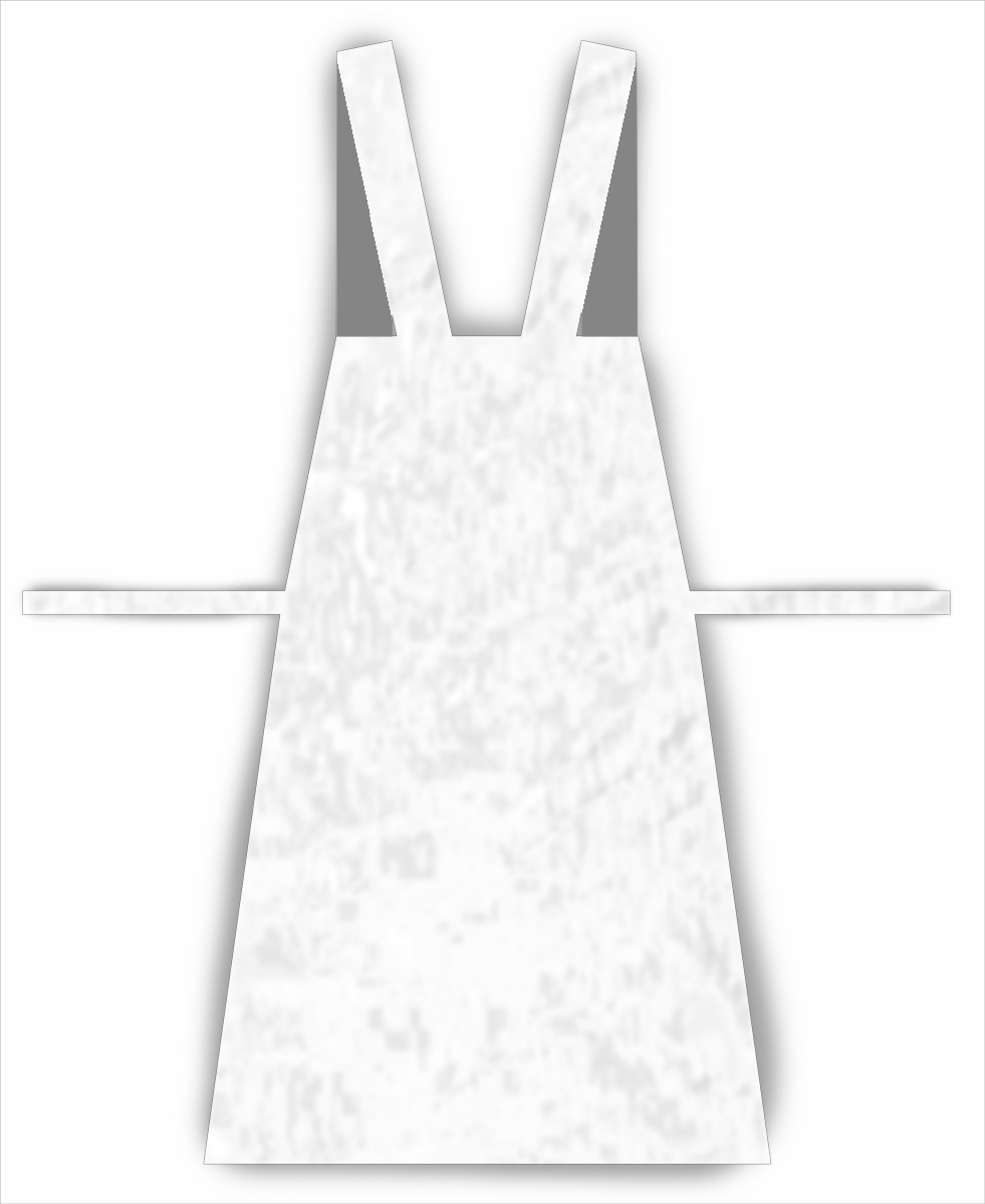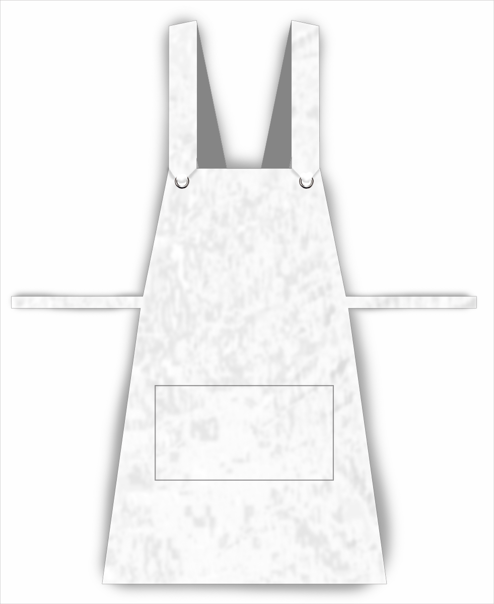 Модель: Фартук трапециевидной формы. Состоит из двух деталей, которые скрепляются между собой с помощью верхних и боковых завязок. Верхние завязки фиксируются на передней части с помощью никелированных люверсов диаметром 16 мм. Фартук имеет карман 32х17 см, который разделен на два отсека. Фартук по периметру обработан швом вподгибку. Завязки выполнены из основной ткани.