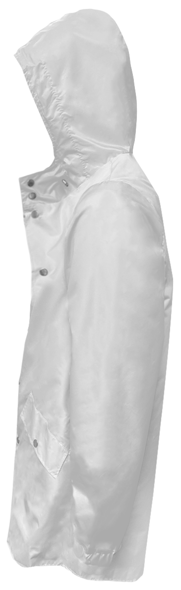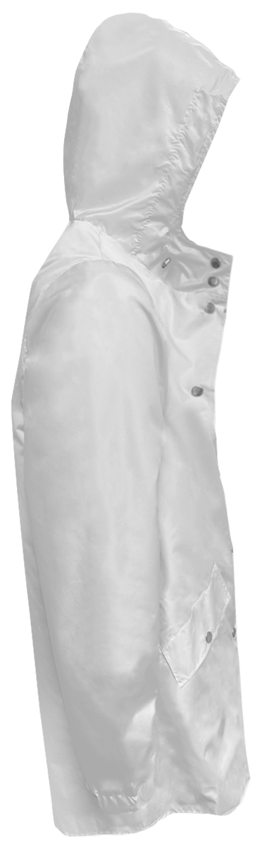 Модель. Ветровка прямого силуэта с длинным рукавом с манжетой на резинке. Пришивной капюшон затягивается резинкой с фиксаторами. Задняя часть удлинённая с фигурным низом. Ветровка застегивается на кнопки. Ветровка с подкладом из шелка расцвечивания стандартных цветов. Имеет два кармана с клапаном на кнопках.