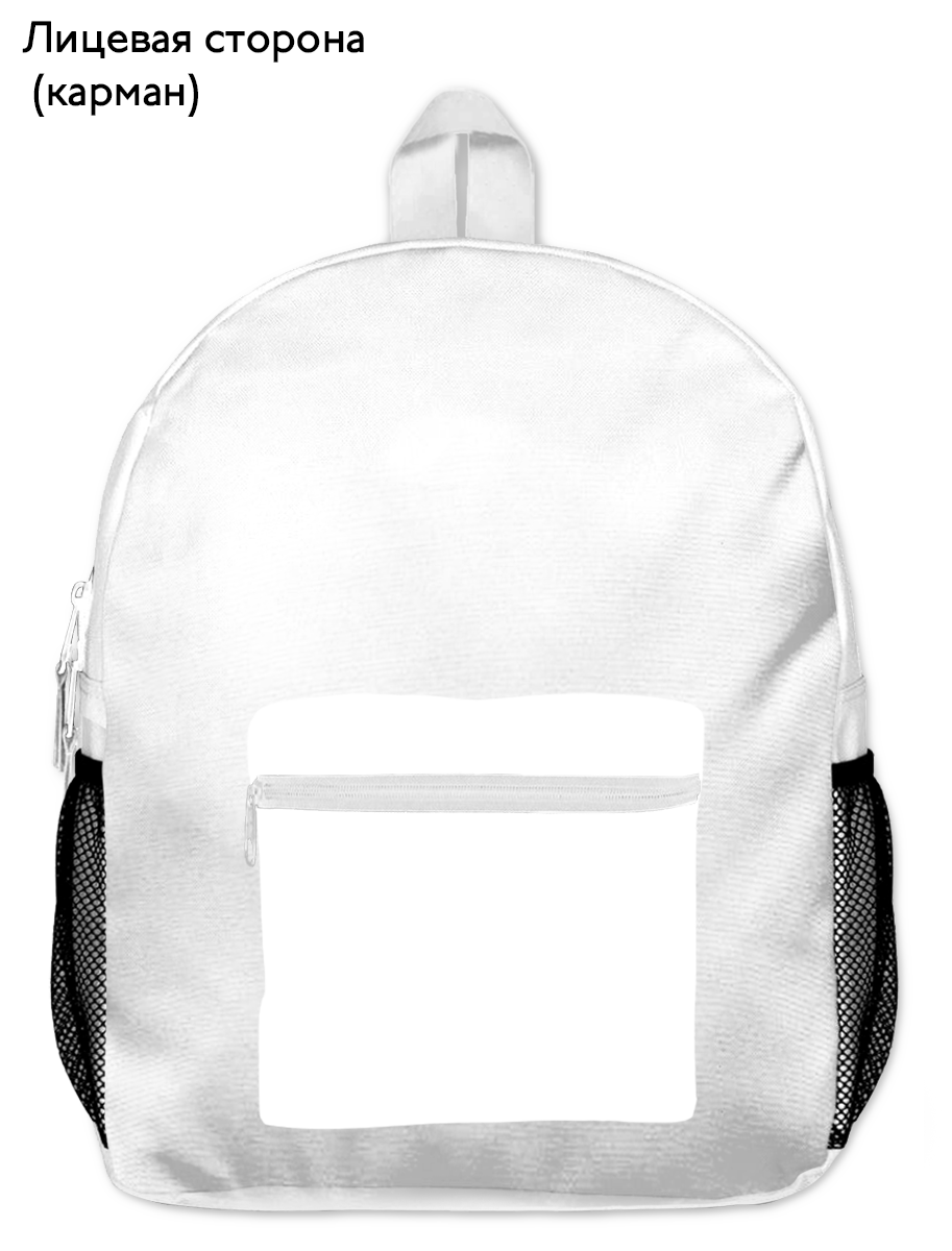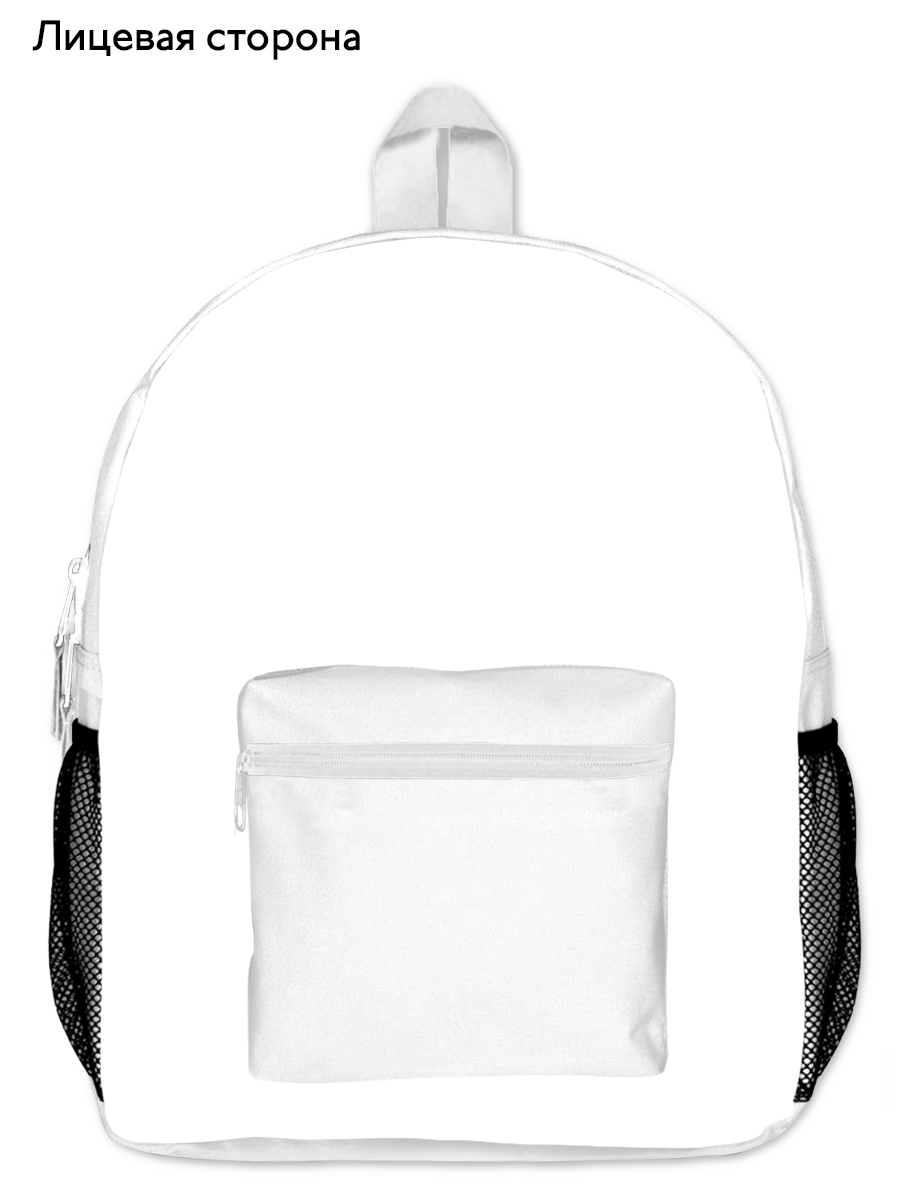 Сублимация. Полноцветное изображение осуществляется на всей поверхности рюкзака в процессе производства. Изображение располагается в соответствии с лекалом. Нанесение входит в стоимость рюкзака.