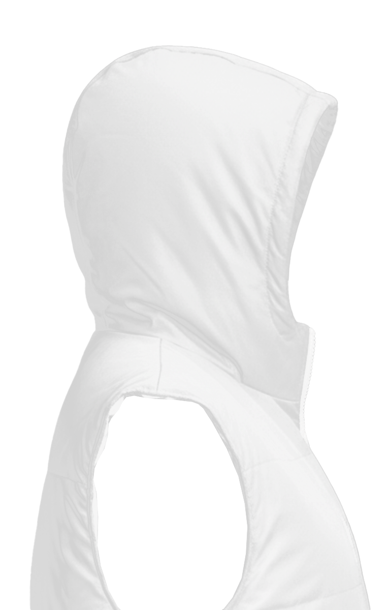 Модель: Жилет Трис прямого силуэта. Имеет два накладных кармана на утеплителе. Центральная застежка молния. Капюшон втачной. Низ изделия фигурный - удлинённая спинка.