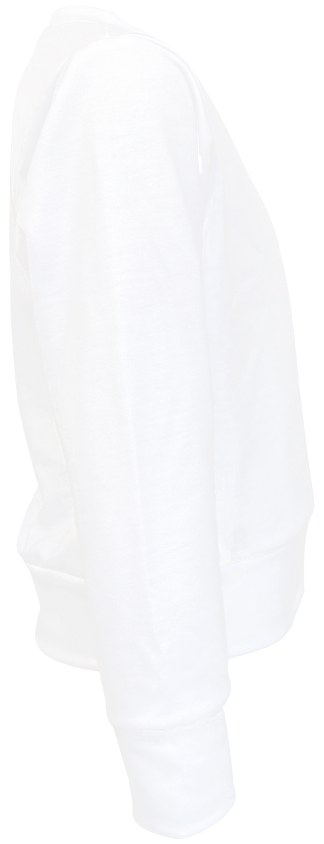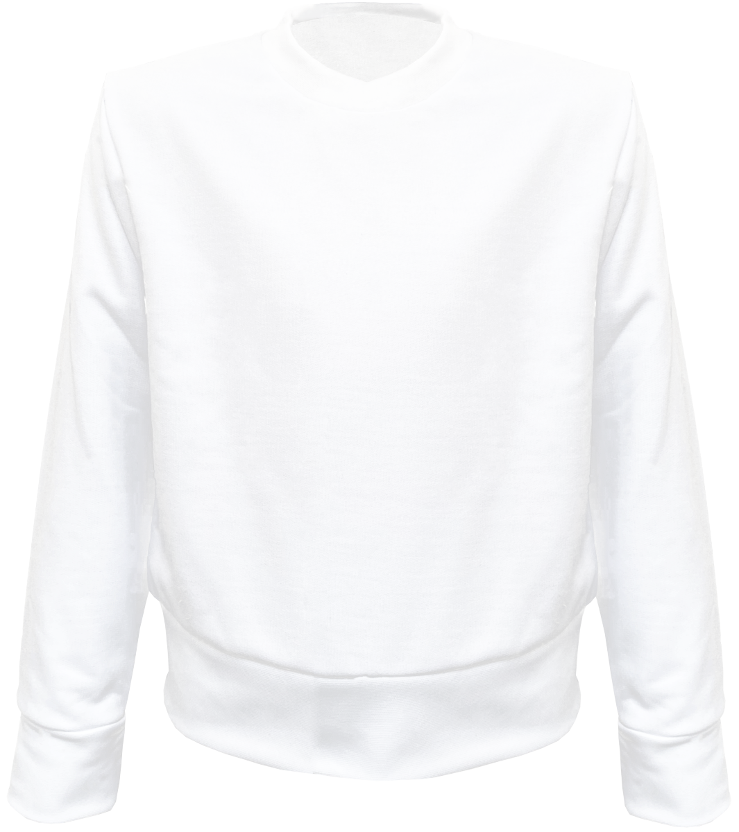 Модель. Прямой силуэт. Длинные вшивные рукава. Низ свитшота и рукавов, а также О-образный ворот, обработаны тканью прима. Свитшот без молнии, карманов, капюшона.