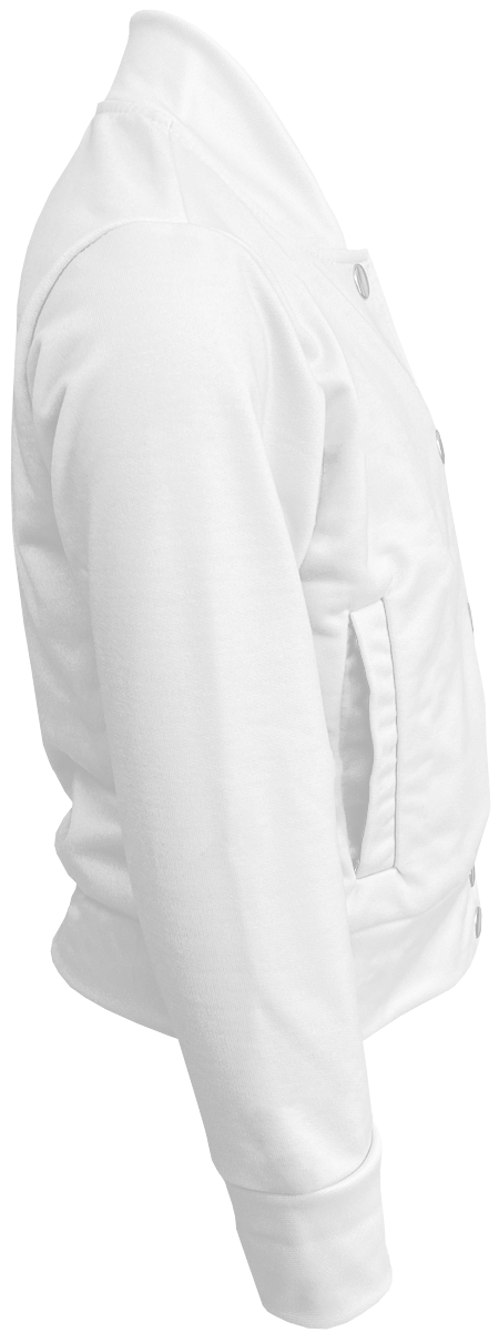 Модель. Прямой силуэт, без капюшона. Длинные рукава с манжетами из сублимационной ткани прима. Низ бомбера и воротник с закругленными углами также выполнены из сублимационной ткани прима. Вариант застежки бомбера на выбор: на шесть металлических кнопок или на молнию. Два боковых кармана в листочку без молнии.